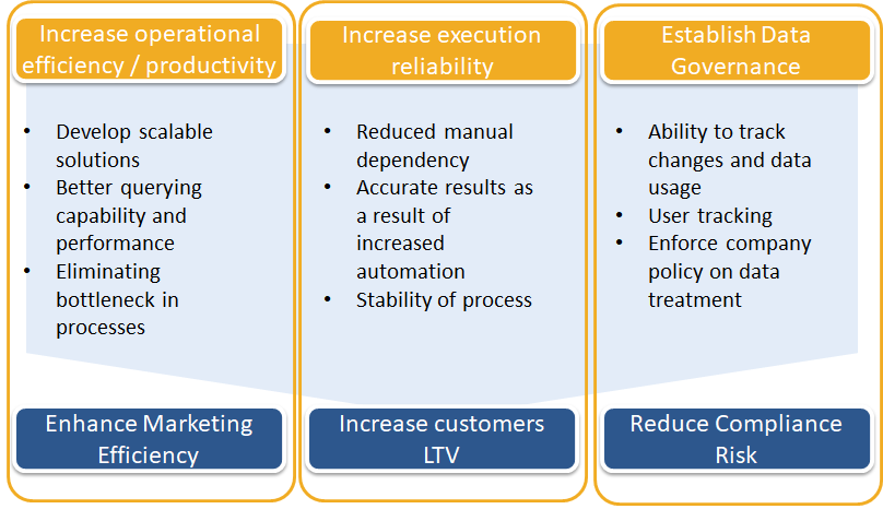 The MarTech project is the foundation block for digital marketing. By integrating data across multiple platforms, we have already seen our marketing efficiency increase greatly. We are now able to pass first party data back to our ad serving platforms which helps programmatic paid search and enhances our Display teamsβ target audience.