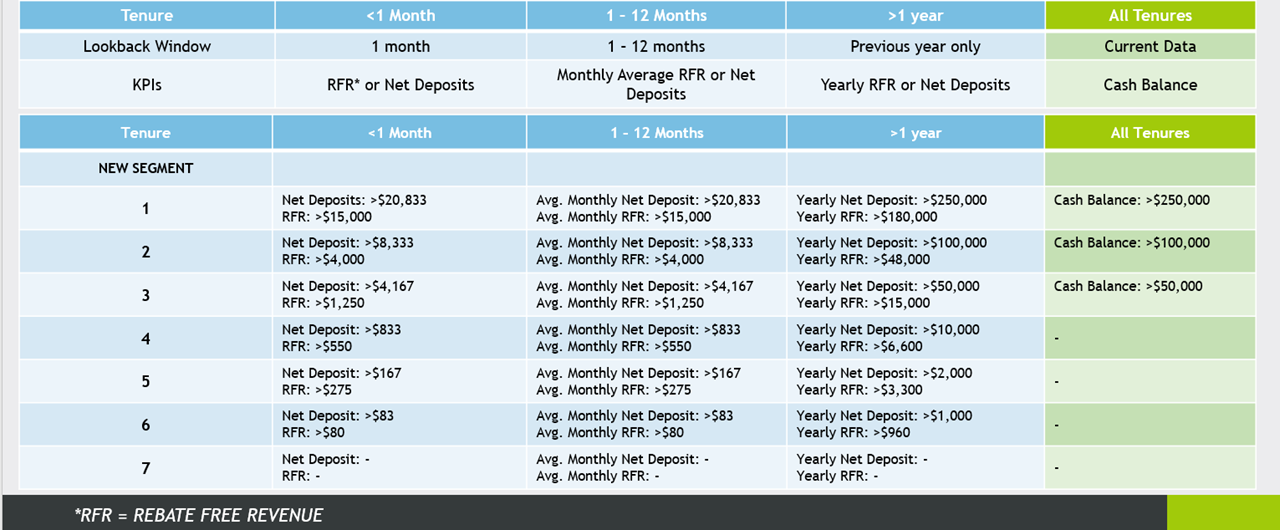 We have now redefined our Value Segments (1 – 7) based on client deposit, revenue and balance.